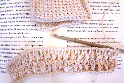 Um cachecol de Primavera, ainda em wip, para os dias primaveris frios que se fazem sentir. Já com aplicação deste pedacinho feito aqui.